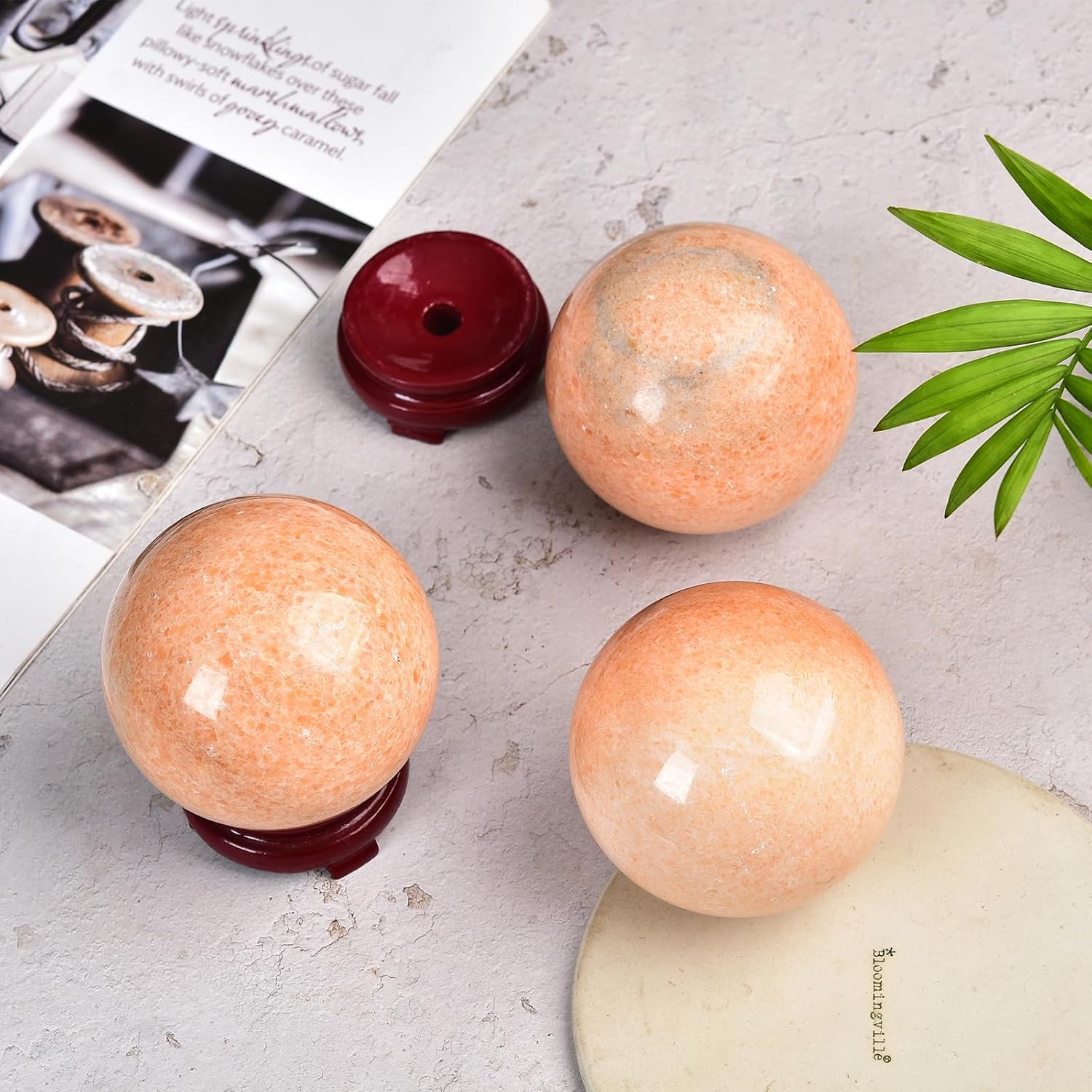 - 【Sunstone Quartz Crystal Ball】:size:70-80mm,Material:Natural Rare Sparkling Sunstone Stone.Quantity:1Pce,with Free base,They are polished with 100% natural materials and contain no artificial materials (no dyes or color enhancements)