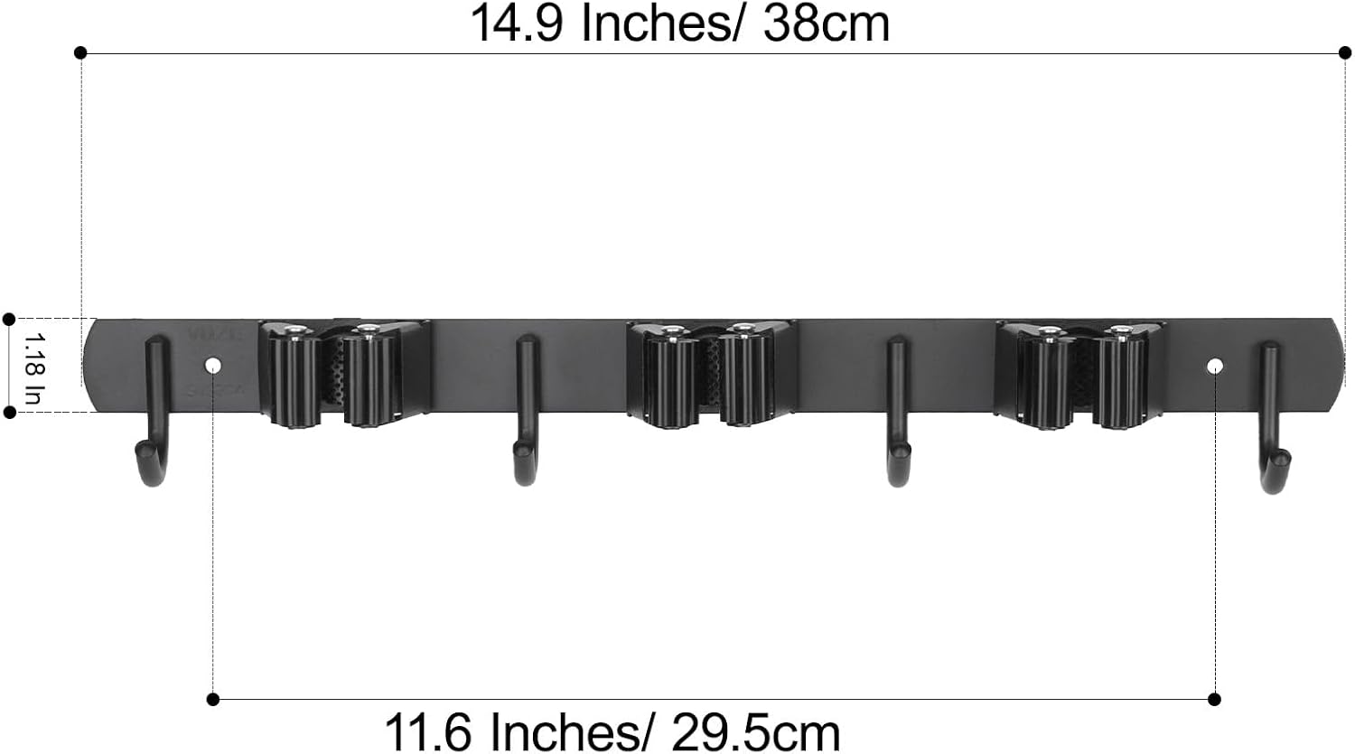 - [Organizing & Saving Space] Keep your garage or laundry room organized and tidy immediately after using this broom and mop organizer wall hanging, it is designed with 2 slots and 3 Hooks/ hangers and can organize your brooms, mops, rakes, garden or garage tools and other accessories, all your tools won't disorderly stacked on the ground or in a corner of your house, save great space.