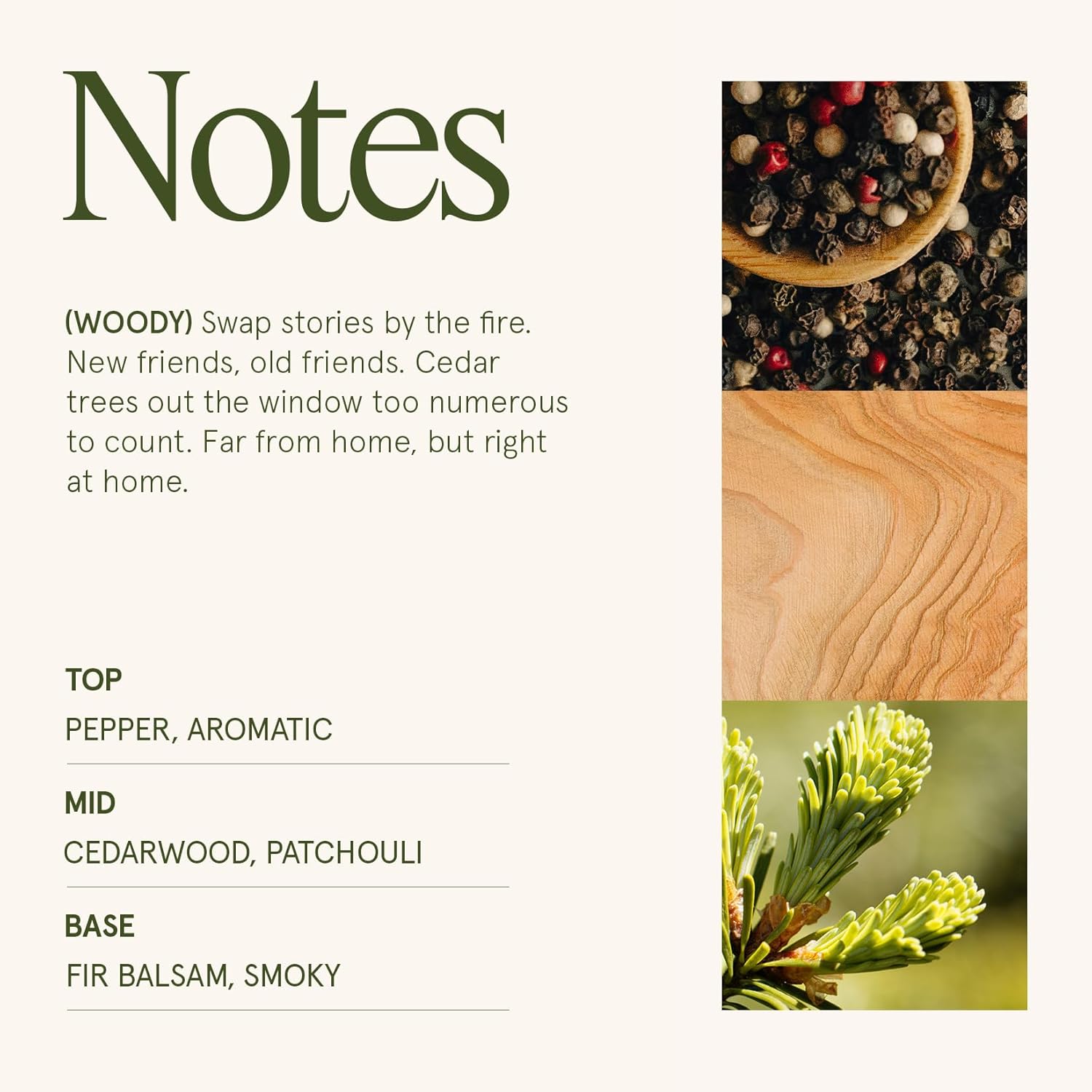 - STARLIT GOLDEN FIR - Crisp mountain air laced with refreshing cedarwood and earthy patchouli, then deepens into a forest of fir balsam, kissed by a wisp of campfire smoke. A reminiscent of a holiday family gathering under the evergreen conifer