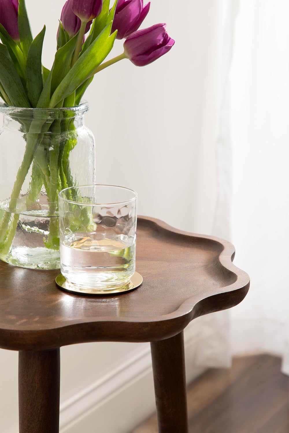 Kate and Laurel Alezar Modern Wooden Round Side Table, 15 x 15 x 22, Walnut Brown, Mid-Century Solid Wood End Table with Wavy Edge for Bedroom Nightstand or Living Room Accent Table