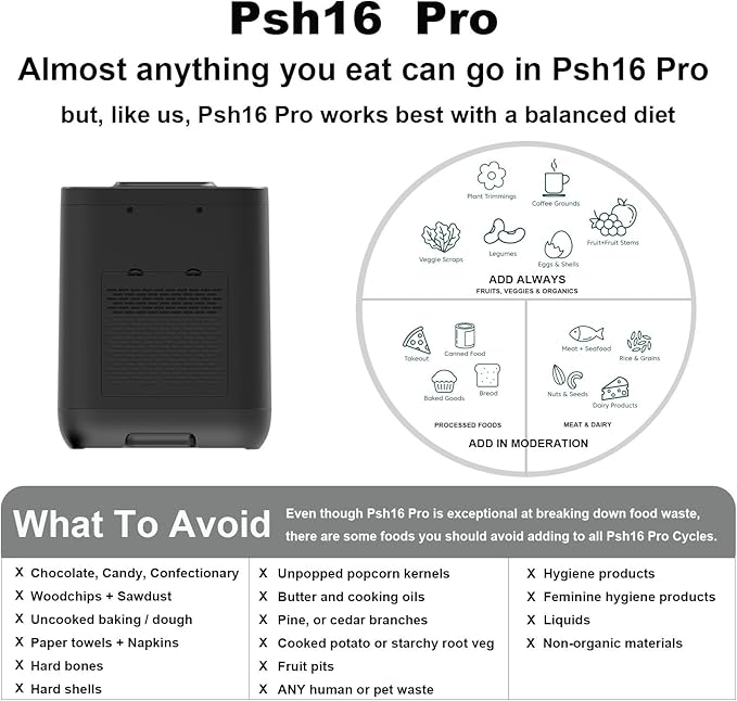 - Quiet Composter Machine:Psh 16 Pro Composter operating max noise 46 dB, it ensures minimal noise disturbance, allowing you to compost effortlessly without any disruptions
