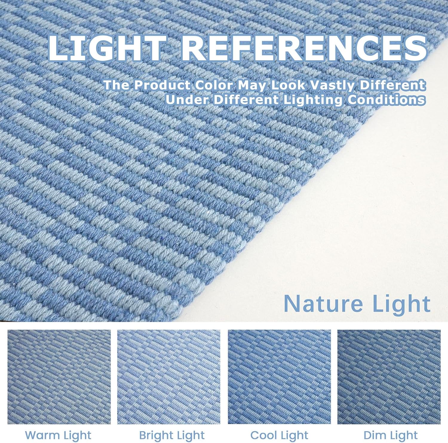 - Color Variation Notice: Denim blue and ice blue combine to give this rug a cool, calming vibe. The image makes this look like a plain carpet, but it's actually a two-tone checkerboard design