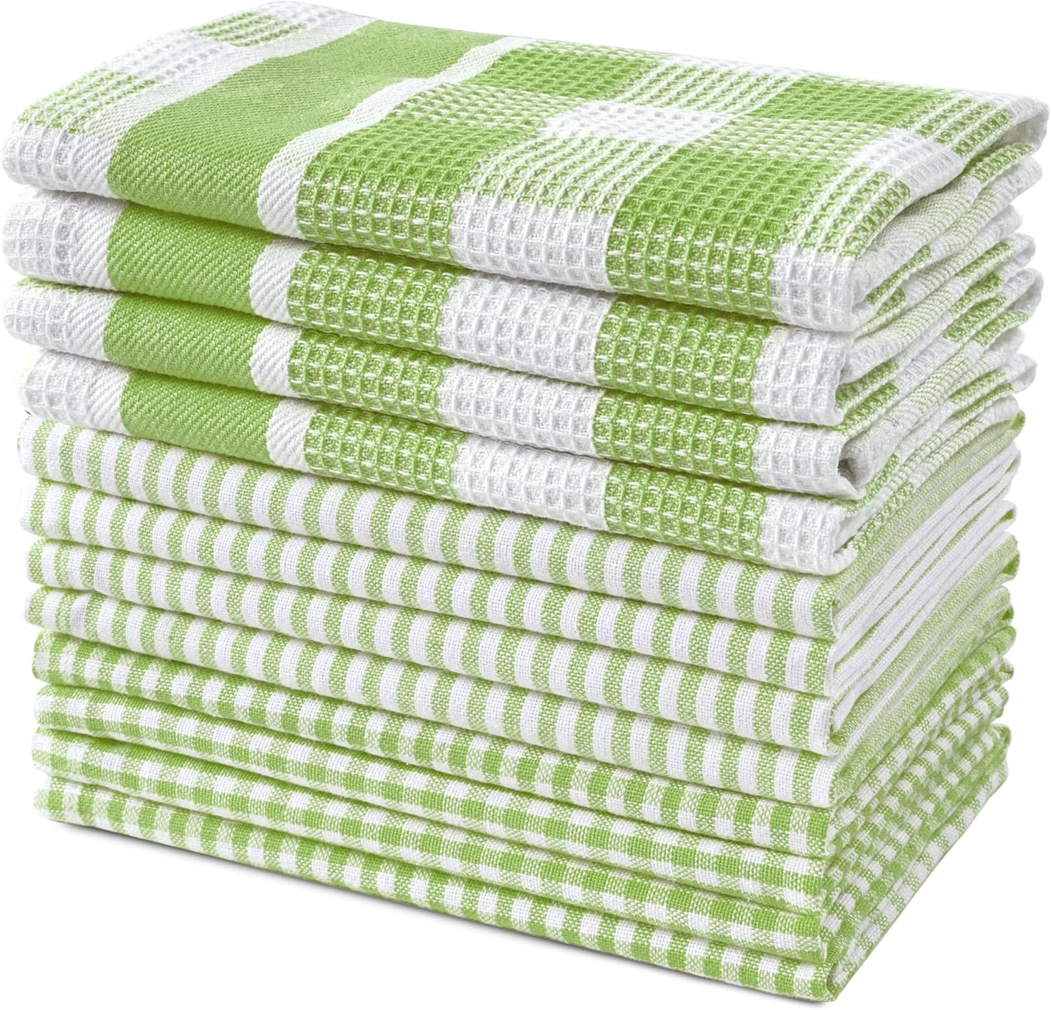 LANE LINEN 100% Cotton Kitchen Dish Cloths, Ultra Soft Absorbent Quick Drying Dish Towels, Multiweave Wash Cloths Dish Towel Sets, 12x12 Inches, 12 Pack - Sage Green