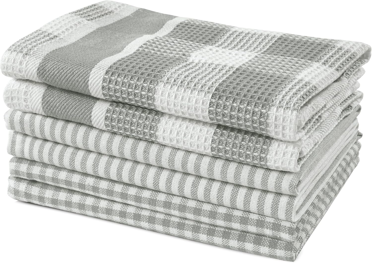 LANE LINEN Cotton Dish Towels - 6 Pack Soft Absorbent Kitchen Dish Cloths, Multi Purpose Kitchen Towel for Cleaning & Drying, 12"x12" - Grey