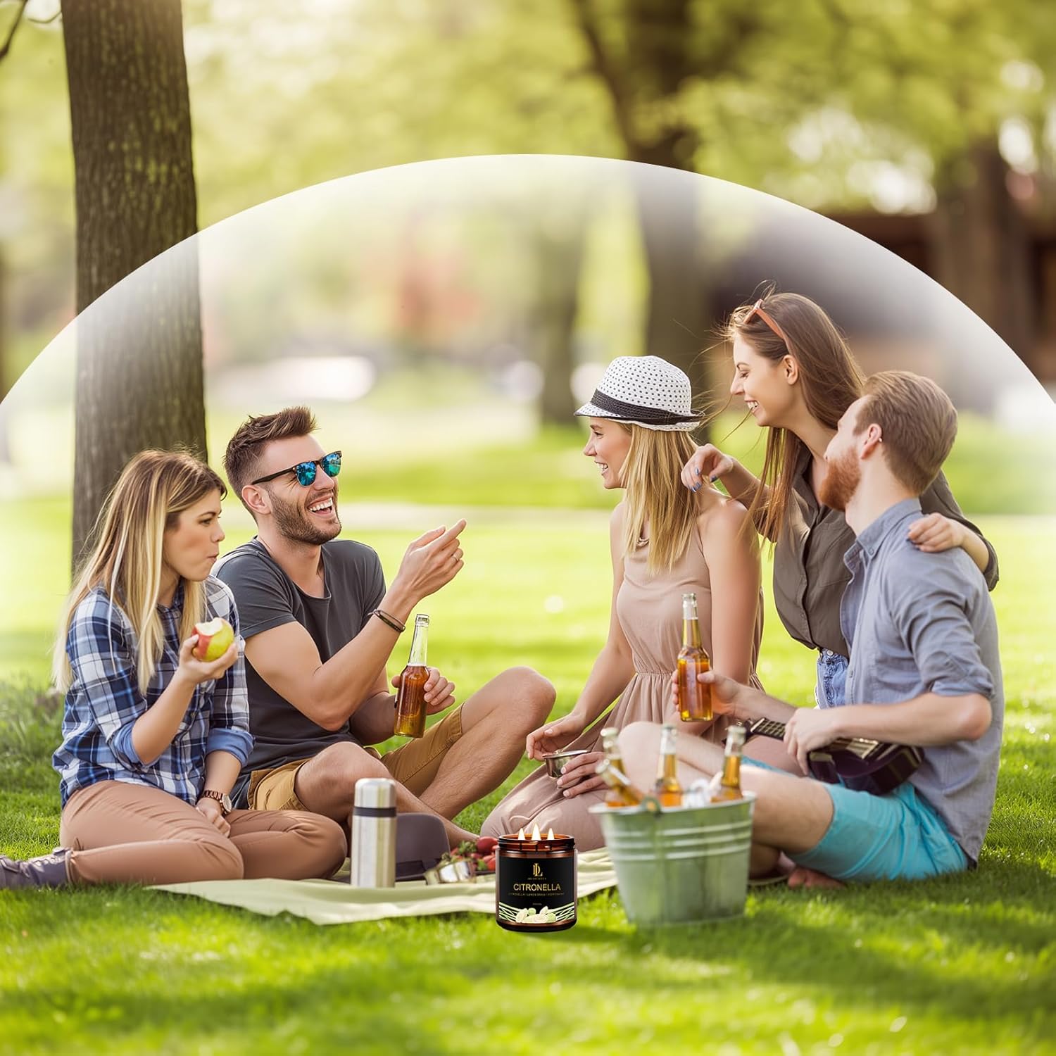 - 12oz Large Capacity: This outdoor candle is made of natural soy wax and mild citronella oil fragrance. There is no black smoke or harmful substances when burning. It is environmentally friendly and healthy, and the aroma is fresh and natural without irritation. The 12oz large capacity with 3 wick design makes the burning more even, the aroma spreads more widely, and the burning time is up to 60 hours. It is an ideal choice for outdoor activities such as camping, picnics, and courtyard parties.
