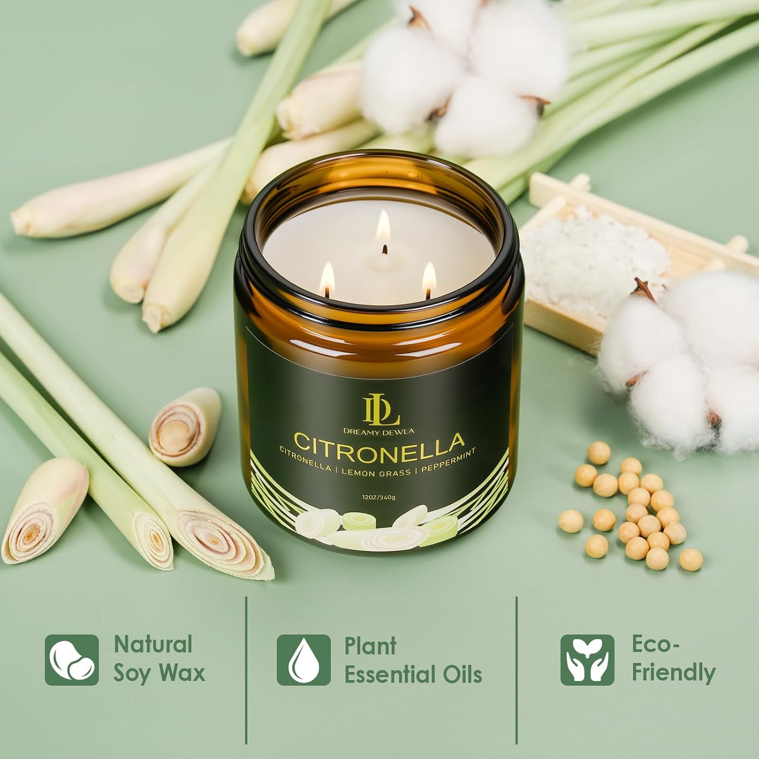 Citronella Candles Outdoor, Large 3 Wick 12oz Scented Candles up to 60 Hours Burning, Natural Citronella Soy Wax Candle for Summer Outside Camping Patio Picnic Garden