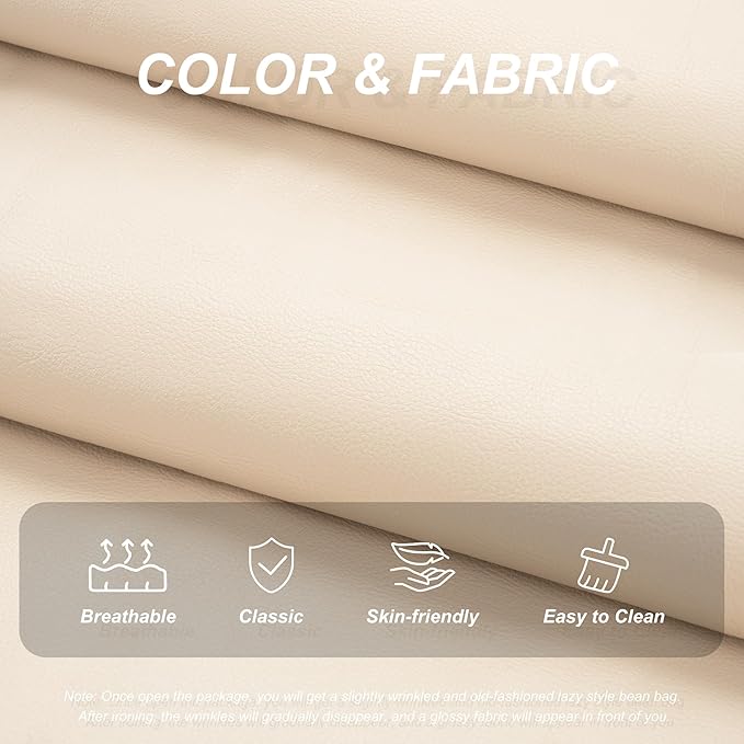 Hobestluk Giant Bean Bag Chair Lazy Floor Sofa, Memory Foam Fireside Sofa for Adults, Big Beanbag Faux Leather Armless Chair for Living Room Bedroom Dorm Office (Beige, Single)