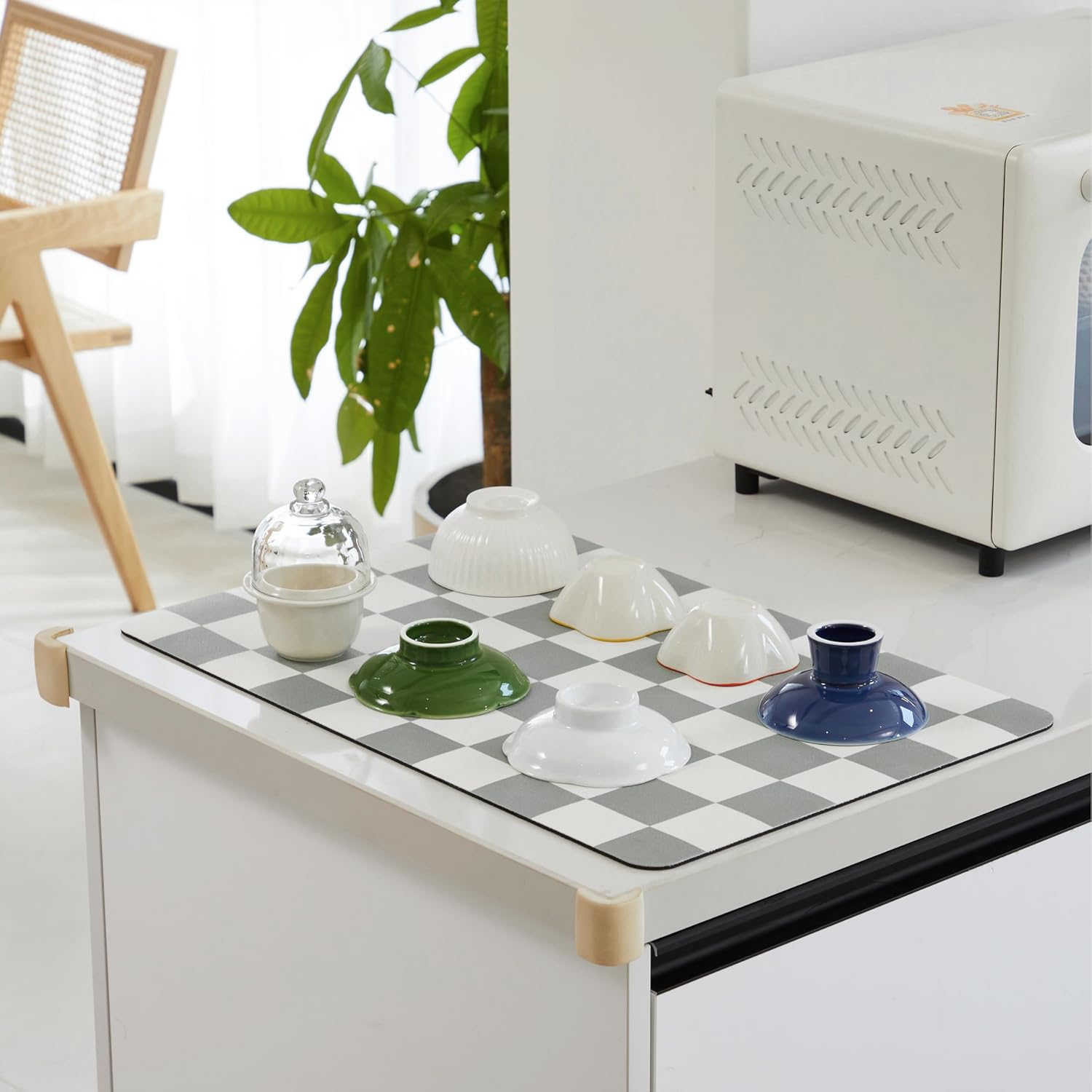 - Colorful Checkered Design: Our dish mat comes in four vibrant checkered designs, adding a pop of color and aesthetic to your kitchen counter and coffee bar. With two size options available, you can choose the perfect fit for your space.