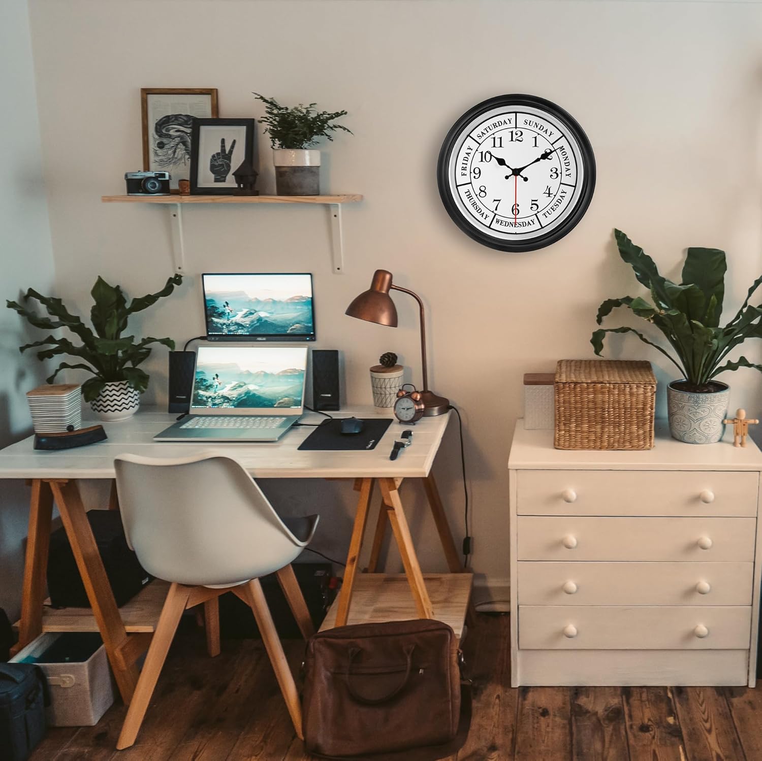 - Elegant Decoration: Whether in the living room, bedroom, or office, this weekday wall clock can become a beautiful decorative piece. Its simple yet elegant design can perfectly integrate into various home decor styles