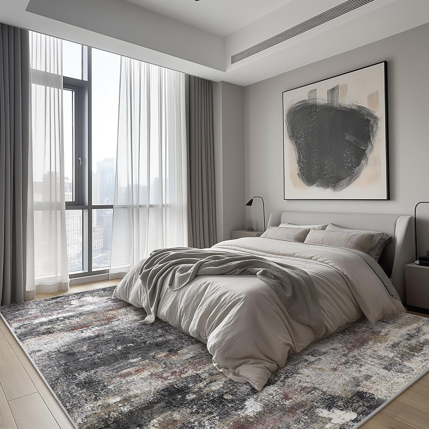 - Tender Touch: Experience the ultimate in luxury with our low-pile polyester modern 3x5 area rug, providing a cozy cushioned surface that eliminates the need for extra padding. This soft dark gray abstract rug insulates your floors, creating a warm and inviting atmosphere in your living room, bedroom, dining room