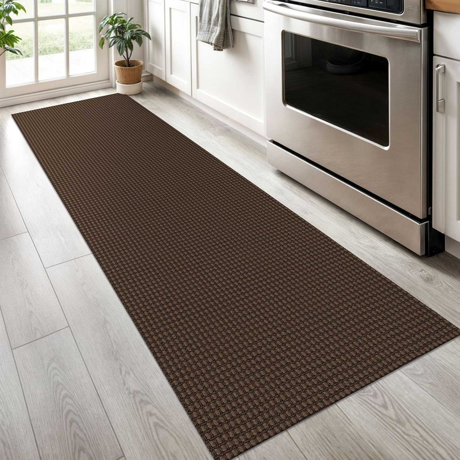 KOZYFLY Runners for Hallways 2x6 ft Washable Kitchen Runner Non Slip Rubber Backed Hall Runners Cotton Entryway Runner Rugs Floor Carpet for Indoor Backdoor Bedroom Kitchen, Reddish Brown/Coffee