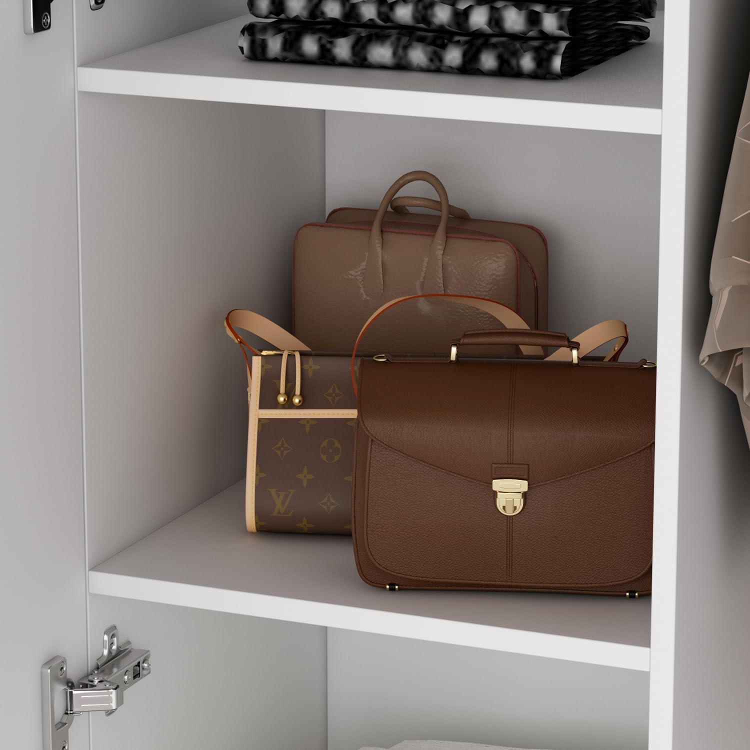 Hitow 2-Door Wardrobe Cabinet with Hanging Rod and 5 Shelves, Modern Free Standing Wood Storage Closet with Sliver Metal Handles for Bedroom, White, 31.5”W x 19.1”D x 70.9”H