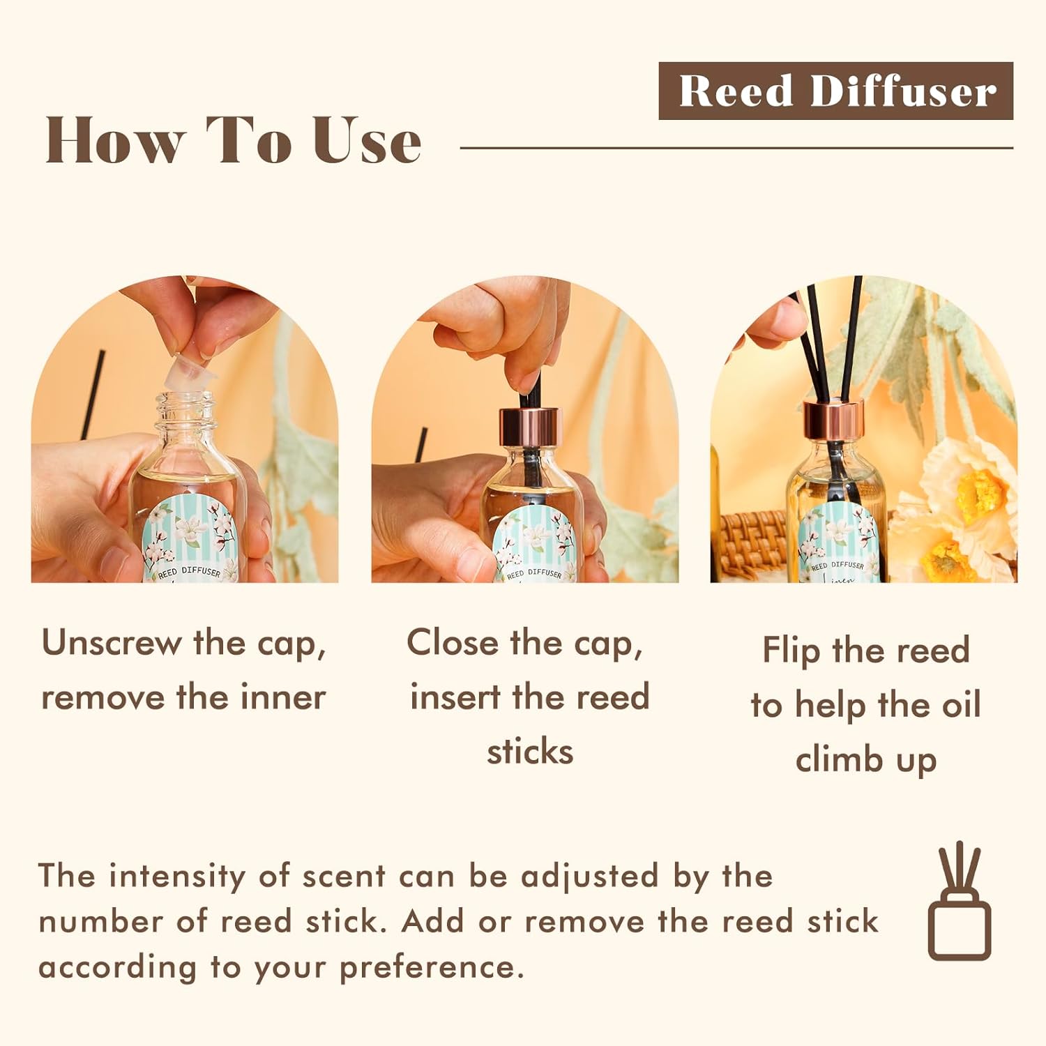 - EASY SCENT CONTROL: You can control the intensity of the fragrance by adding or removing the number of reed sticks to match your preferences.