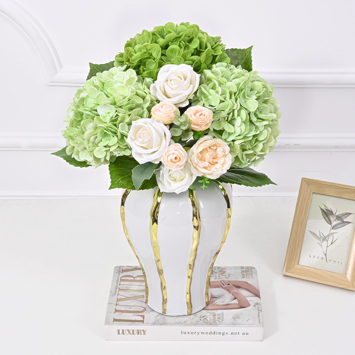 - [Fuller, Most Real & Luxury]: Say goodbye to ordinary silk hydrangeas, our faux hydrangea flower features an impressively large 8.6-inch flower head, and the total length is 22.5 inches. Each hydrangea has 3 leaves with real textures and an 18-inch detachable stem. Decorate with our fluffy and plump hydrangeas, which will brighten up your space.
