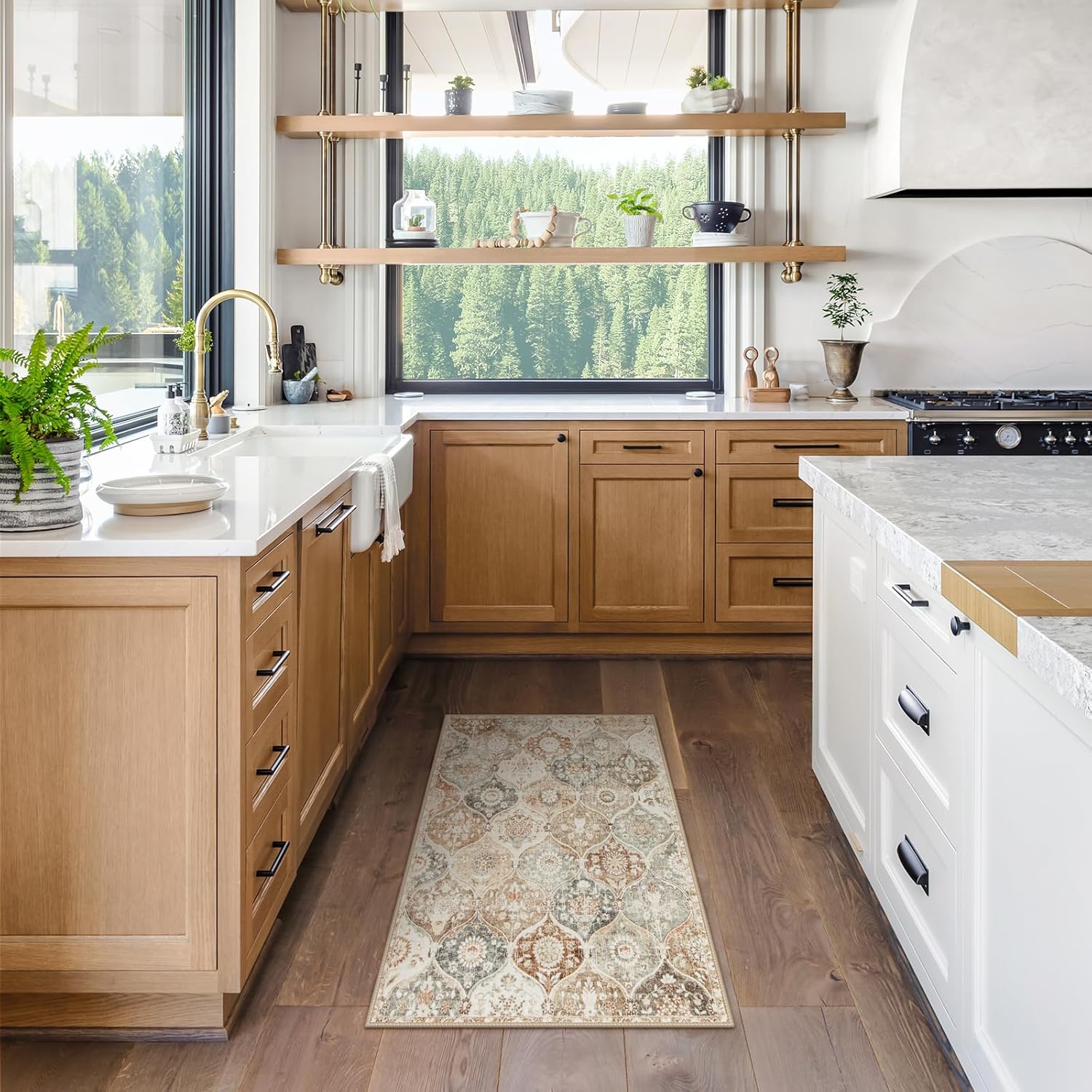 Lahome Moroccan Trellis Entryway Rug, 2x3 Kitchen Rugs Non Slip Washable, Non-Slip Indoor Door Mat Ultra-Thin, Small Throw Carpet for Bathroom Bedroom Entry, Khaki