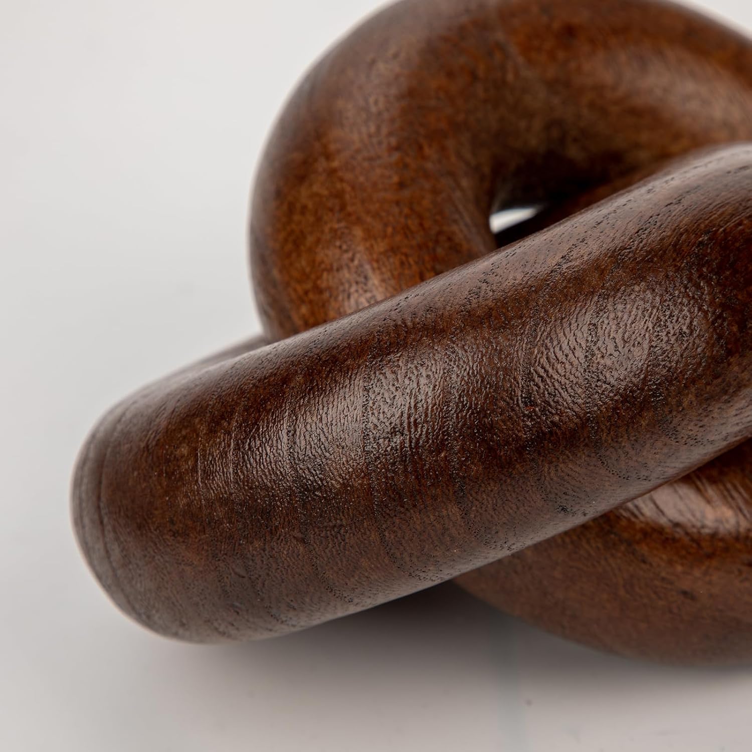 Table Decor Handcrafted Wooden Knot Sculpture Decor – Modern Nordic Style Decorative Accent for Home, Office, Shelf, and Console Table – Dark Walnut Finish, 7"x4.7"