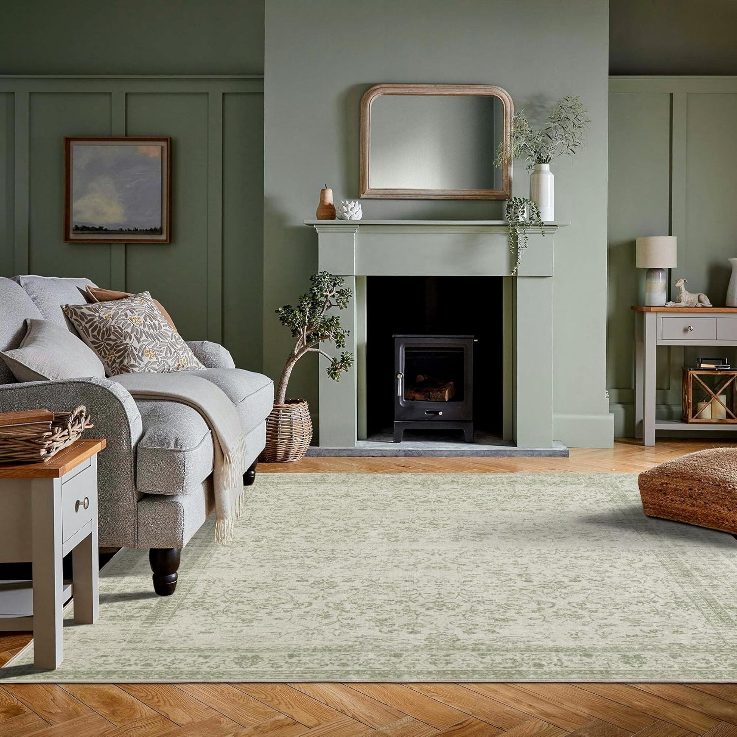 Sage Green Rug for Nursery Baby Girl,Boho Floral Washable Soft Faux Wool Cottagecore Area Rugs for Living Room Bedroom,5 x7,Light Green