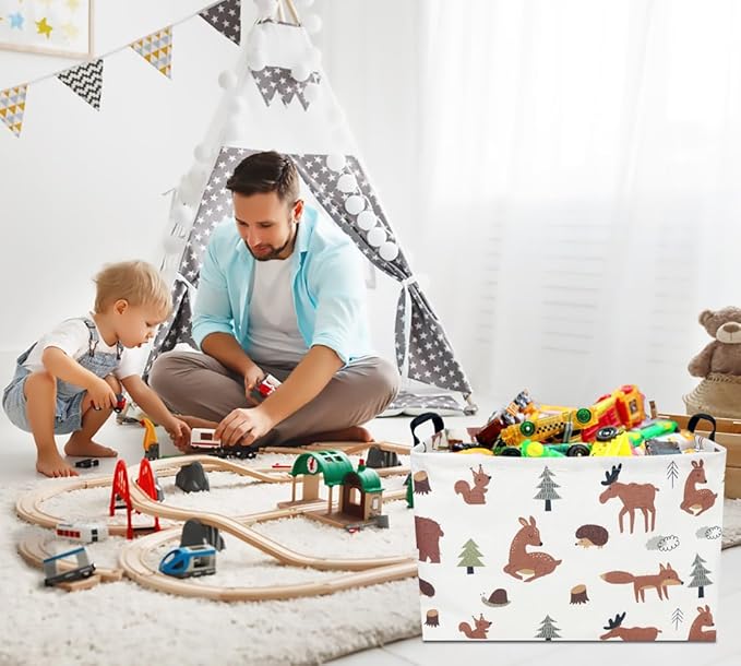 - STYLISH DESIGN:Cute printed pattern is specially designed for kids, which combines both of the ornamental and practical forms. The toy organizer are not only household life good helpers but also charming decorations in kid's room.