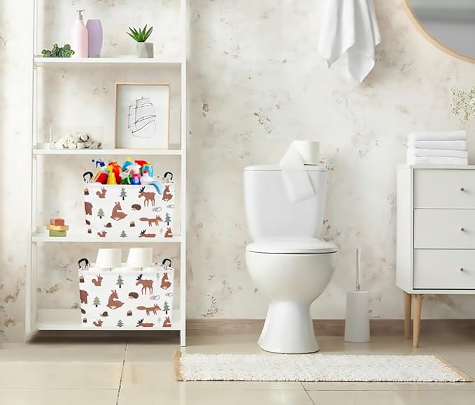 CLOCOR Rectangular Storage Basket,Collapsible Fabric Storage Container,Waterproof Toy Bin with Handles,Gift Basket(Brown Animals)