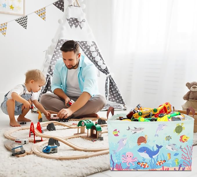 CLOCOR Rectangular Storage Basket Empty,Gift Basket,Waterproof Storage Bin with Handles,Room Decor(Under The Sea)
