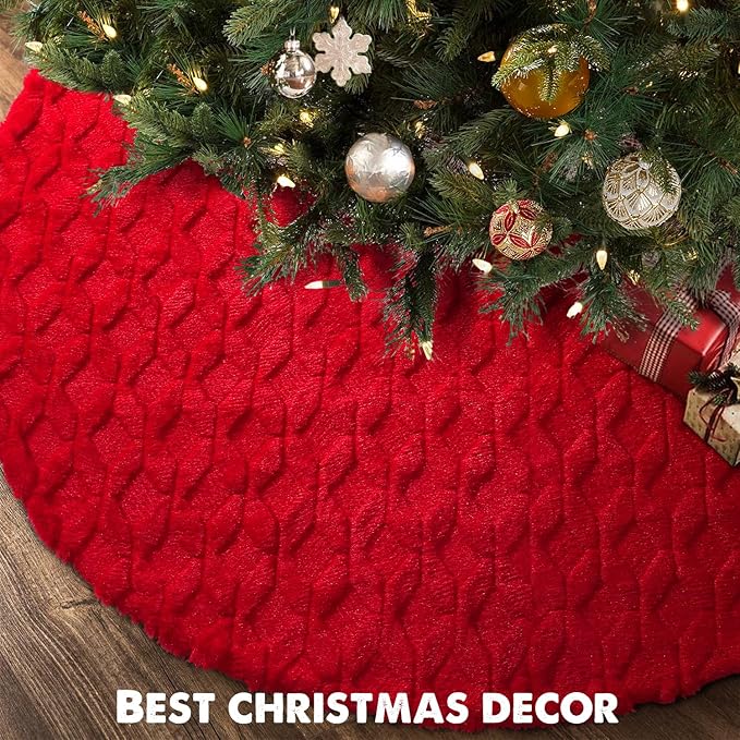 - More fun:in the cold winter, the softness and warmth of the Christmas tree skirt, coupled with the pure red design, will attract children and pets to touch or even consider lying on it. Let this well-made tree skirt accompany you through a warm winter