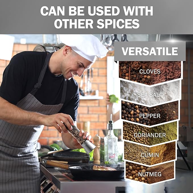 - Kitchen Must Haves and Wedding Registry Items: This beautiful salt and pepper grinder set is not only a practical kitchen accessory but also a stylish kitchen dΓ©cor item. Made of premium materials, the adjustable grinders allow for fine to coarse grinding and make a great addition to any wedding registry or kitchen must-have list. Elevate your cooking game and add a touch of sophistication to your kitchen with this elegant and functional grinder set. A must have kitchen gadgets.