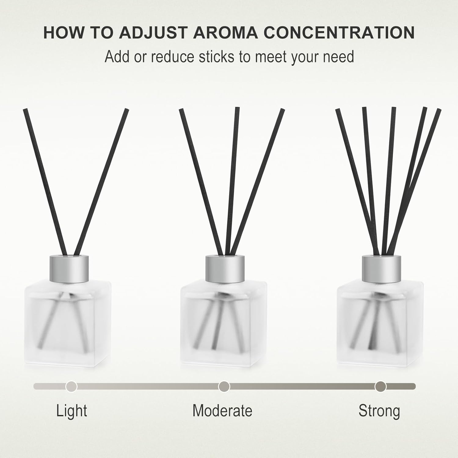 - [Adjustable Aroma Concentration] Adding or subtracting sticks appropriately can adjust the diffusion concentration. The first use of sticks can be reversed several times to quickly volatile the aroma. The effect of aromatherapy can be affected if placed for a long time. At this time, the sticks can be flipped to restore volatilization.