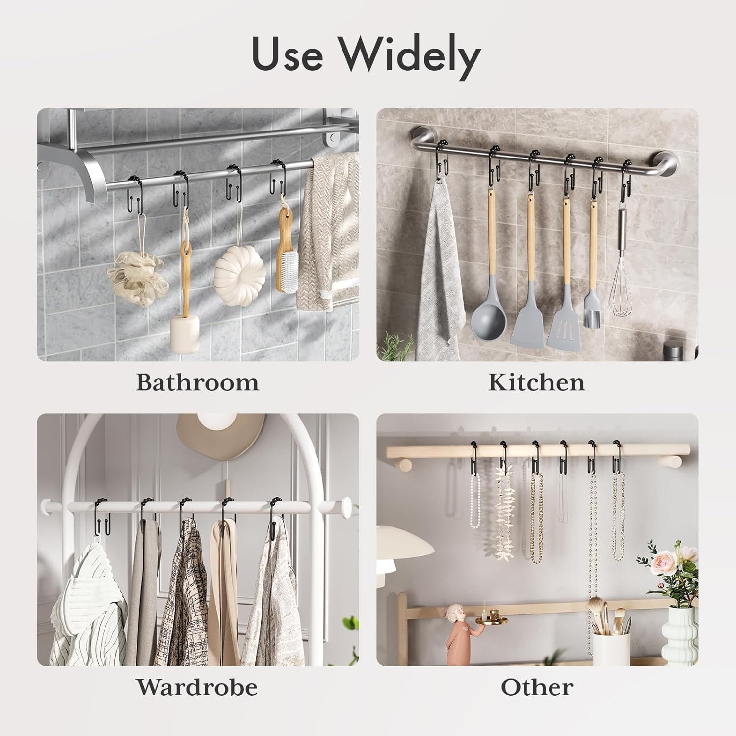 - Easy to Use: These black shower curtain hooks are suitable for shower curtain rods in various bathroom decoration styles, and the open design of these double hook shower curtain hooks are very convenient for your installation and disassembly. Save your time and energy