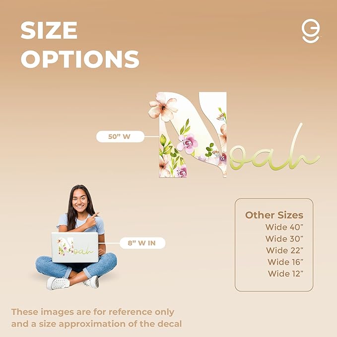 - 📏 MULTIPLE SIZE CHOICES: Tailor the name decal to your space effortlessly with multiple size options. Whether you want small flower stickers decoration or a big flower decor piece for your wall, our range of sizes ensures the perfect fit for any wall in your girls room. We believe in offering flexibility. Explore our vinyl letter stickers collection with various size options: Wide 8", Wide 12", Wide 16", Wide 22", Wide 30", and Wide 40".