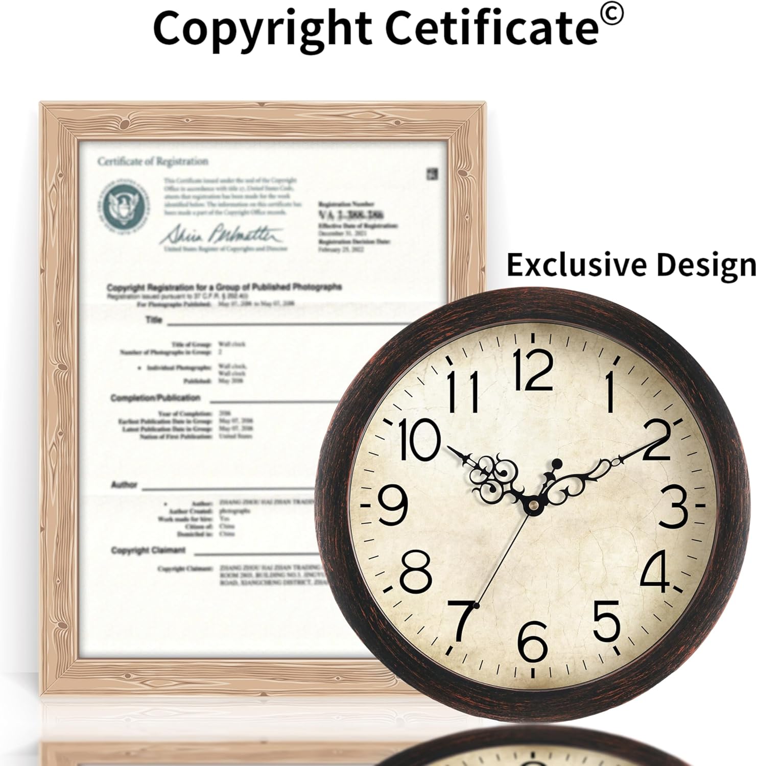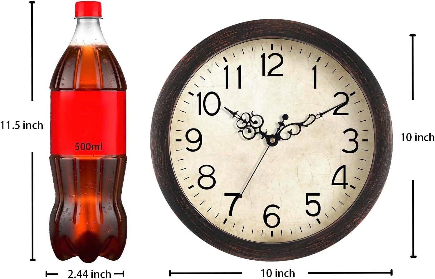 Wall Clock 10 Inch Vintage Wall Clocks Battery Operated Quartz Silent Non-Ticking Retro Rustic Style Clock Decorative for Kitchen,Bathroom, Living Room, Home Office (Bronze)