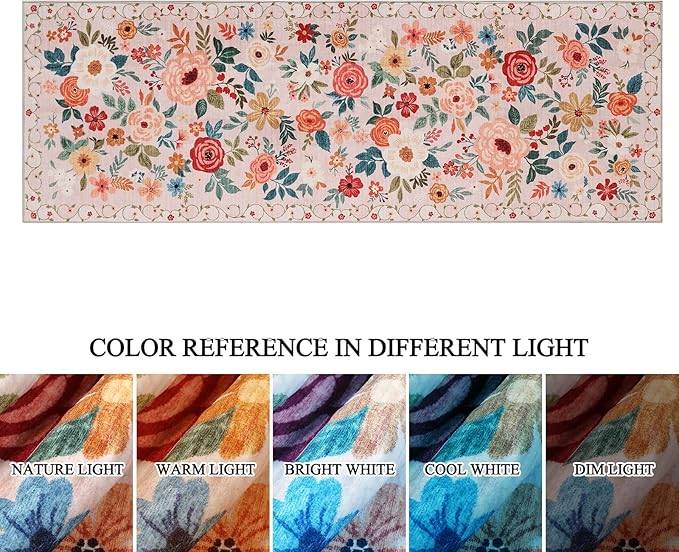 - Washable Rug: Designed for convenience, our floral rugs for bedroom resists stains with easy wipe-offs and tackles daily dust with a simple vacuum or sweeping robot. For thorough cleaning, itβs washing machine-safe.