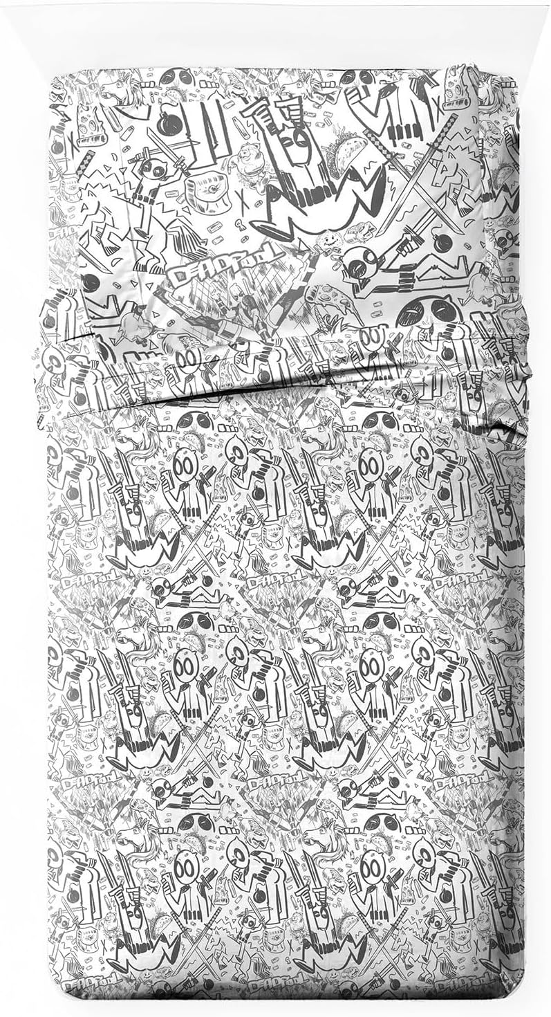 - OFFICIALLY LICENSED: Bring the chaotic energy of Marvel’s Deadpool to bedtime! This vibrant sheet set features bold comic-style artwork and iconic logo. A must-have for Marvel fans and Merc with a Mouth followers.