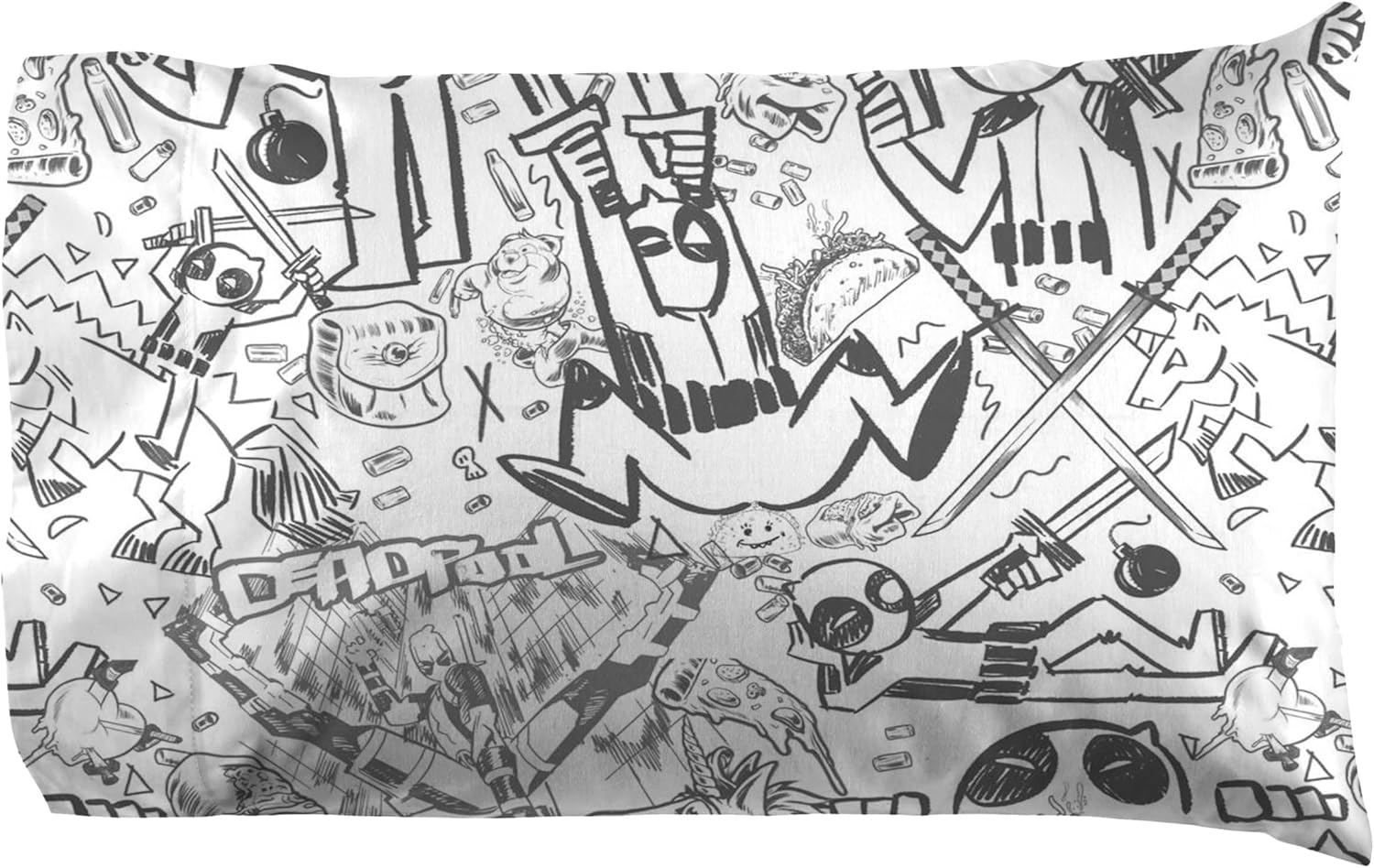 - OFFICIALLY LICENSED: Bring the chaotic energy of Marvel’s Deadpool to bedtime! This vibrant sheet set features bold comic-style artwork and iconic logo. A must-have for Marvel fans and Merc with a Mouth followers.
