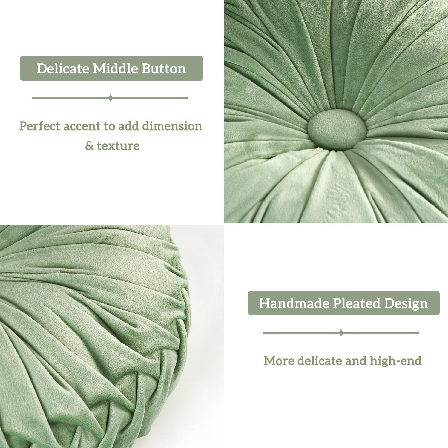 - EXQUISTIE HANDCRAFTED PLEATED DESIGN: This decorative round pillow with unique pumpkin shape is soft to the touch and has extra style with itβs pleated detailing. The intricately pleated design is sewed by hand, not by machine, which is more delicate and high-end. The elegant button in the middle ties together the complete look.