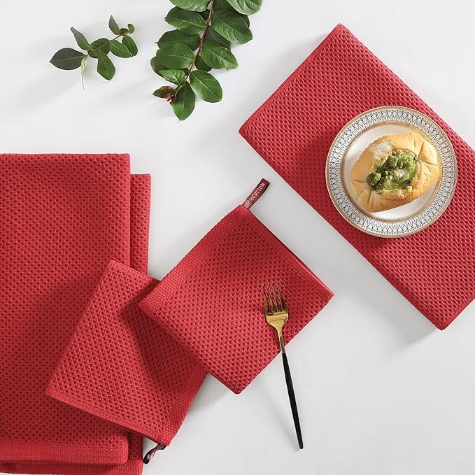 Homaxy 100% Cotton Kitchen Towels and Dishcloths Set, 12 x 12 Inches and 13 x 28 Inches, Set of 12 Bulk Kitchen Towels Set, Ultra Soft Absorbent Dish Cloths for Washing Dishes, Red
