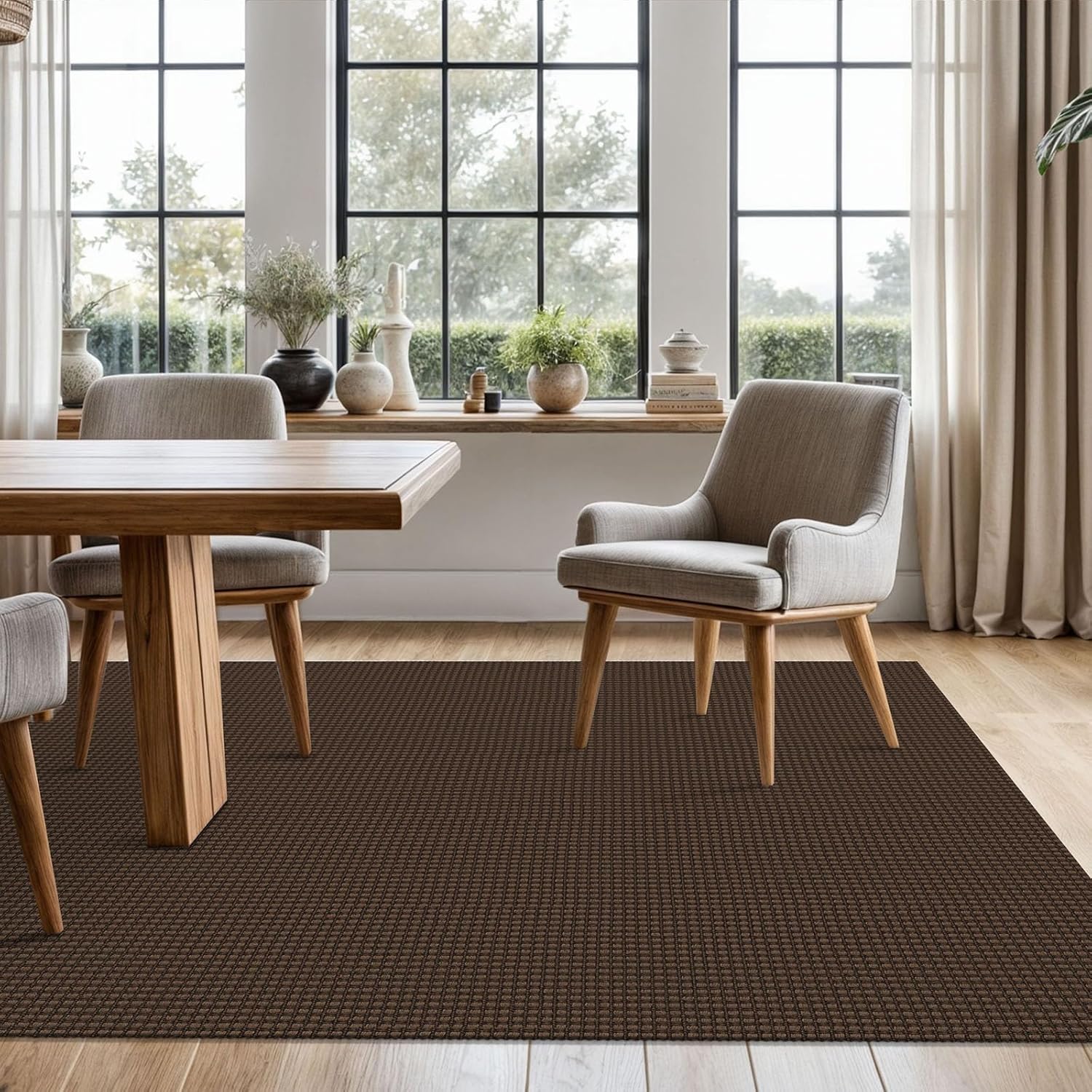 KOZYFLY Washable Area Rug 5x7 ft Rubber Backed Non Slip Rugs for Living Room Braided Cotton Bedroom Rug Woven Office Rugs Indoor Floor Carpets for Dining Bedroom Living Room, Reddish Brown/Coffee