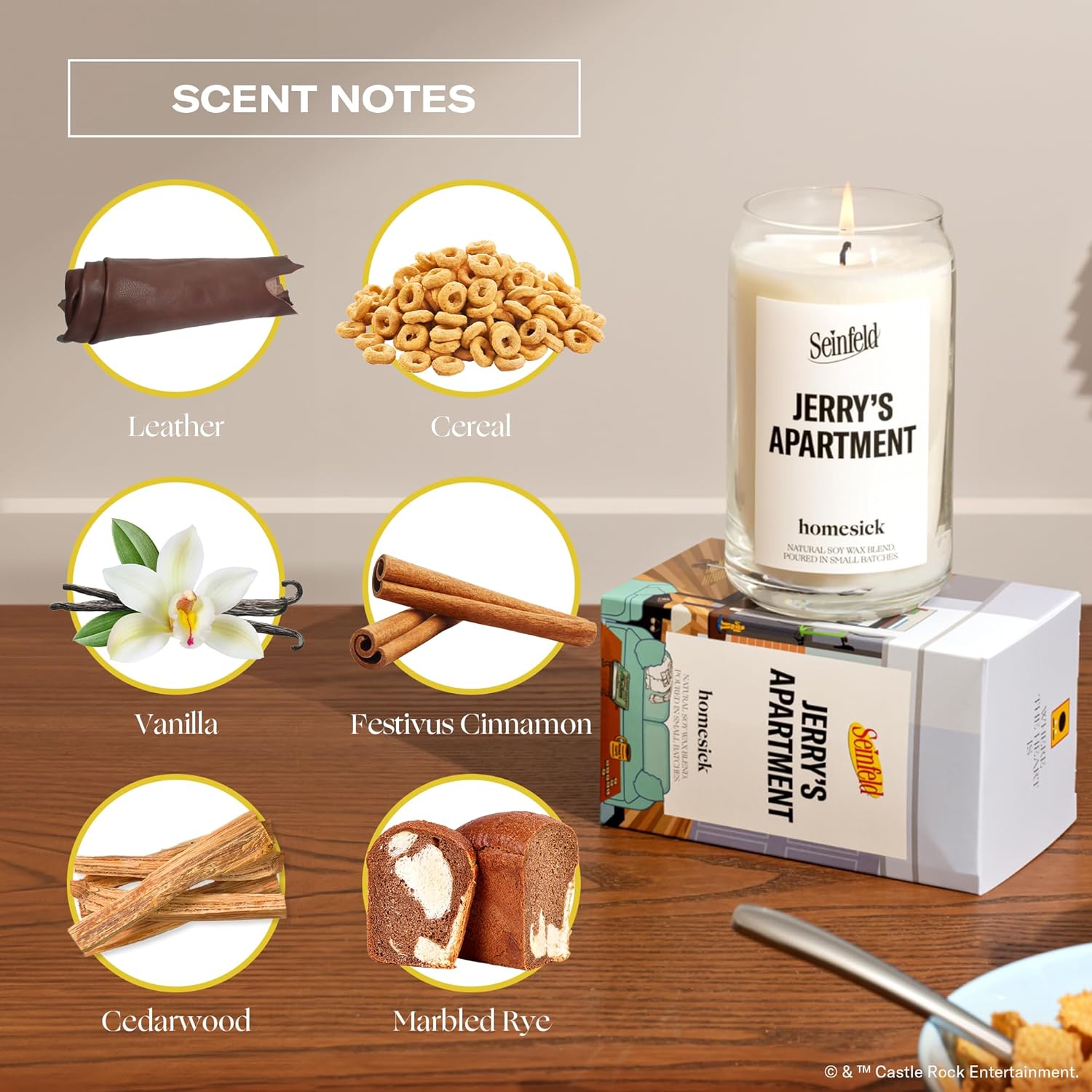 - Serenity Now!: The show’s about nothing, but this scent is everything. Head back to 90s New York, where friends gather for some comedic relief from the yada yada yada of everyday life. Cozy up with your all-time favorite TV show with the Jerry’s Apartment candle from Homesick. 13.75 oz.