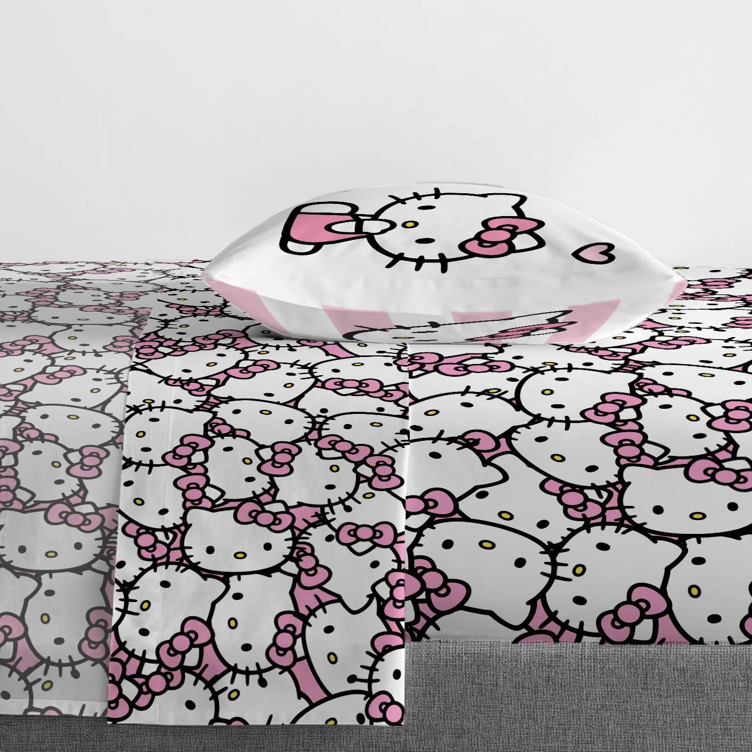 - OFFICIALLY LICENSED: Bring the sweetness of Hello Kitty to bedtime! This vibrant sheet set features Hello Kitty with her signature bow, hearts, and pastel patterns. A must-have for Sanrio fans and kawaii lovers.