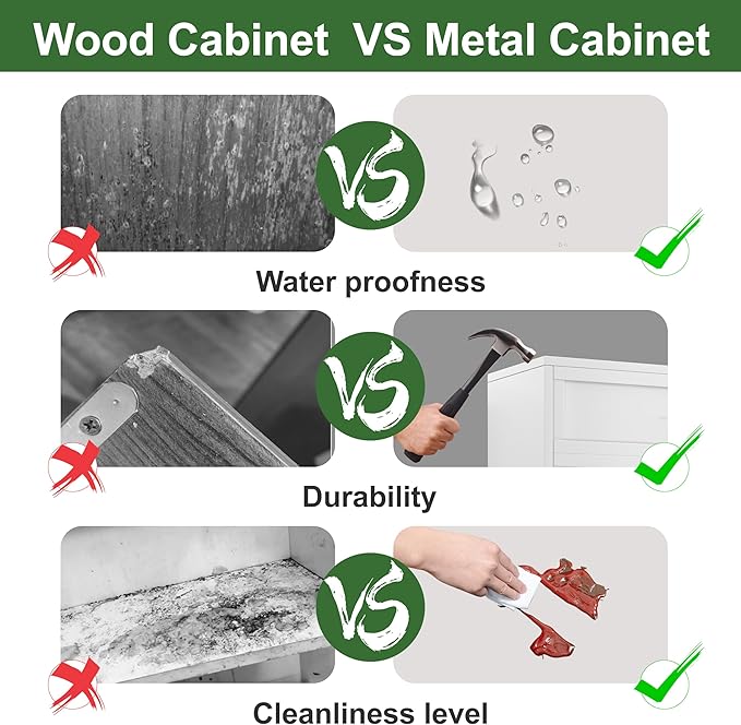 - 🛒【Design to Prevent Tipping】: The metal cabinet has an anti tipping configuration and can be fixed on the wall to prevent the cabinet from tipping over during use.