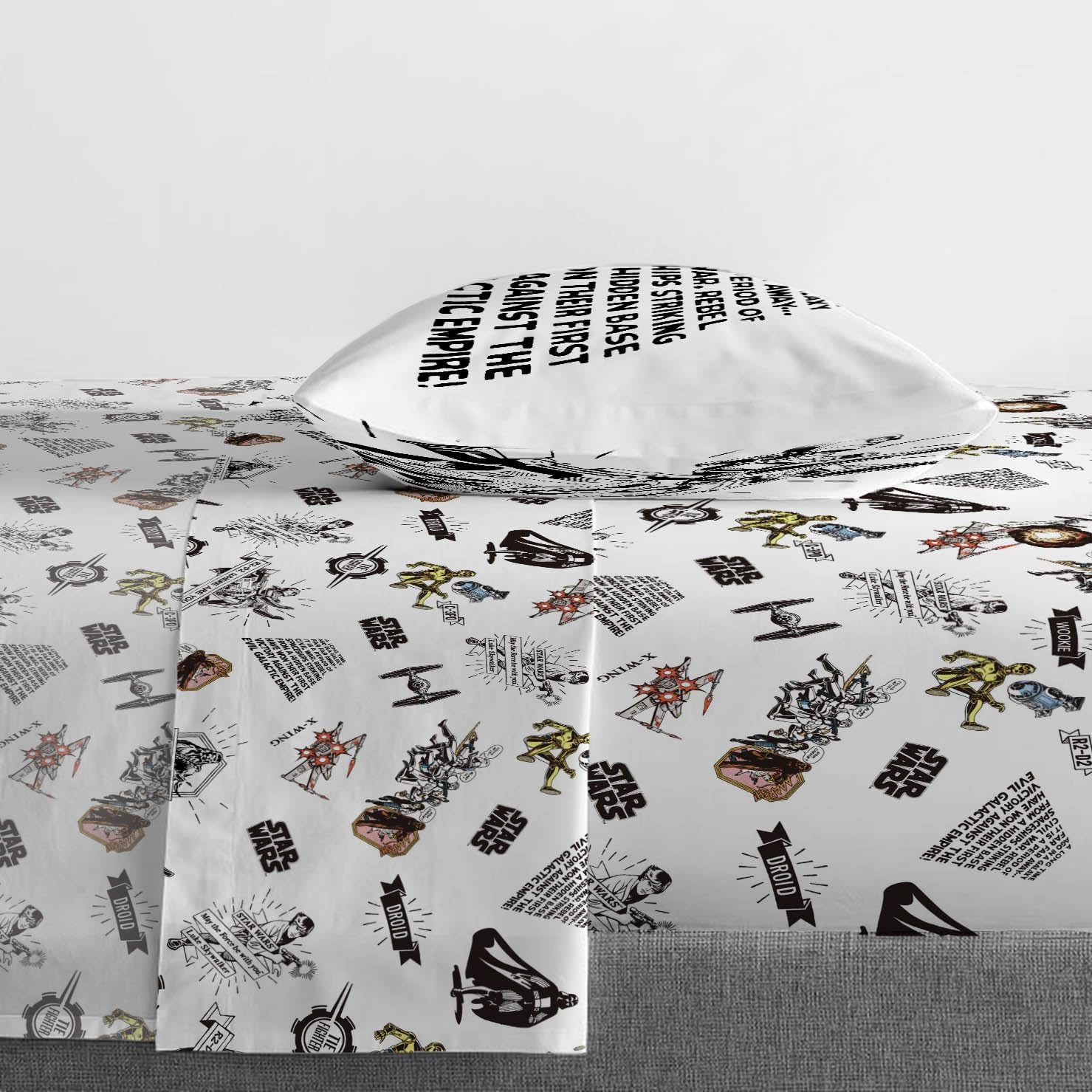 - OFFICIALLY LICENSED: Bring the galaxy of Star Wars to bedtime! This vibrant sheet set features Yoda, R2-D2, Darth Vader and other fan-favorite characters. A must-have for young Jedi and Star Wars fans.