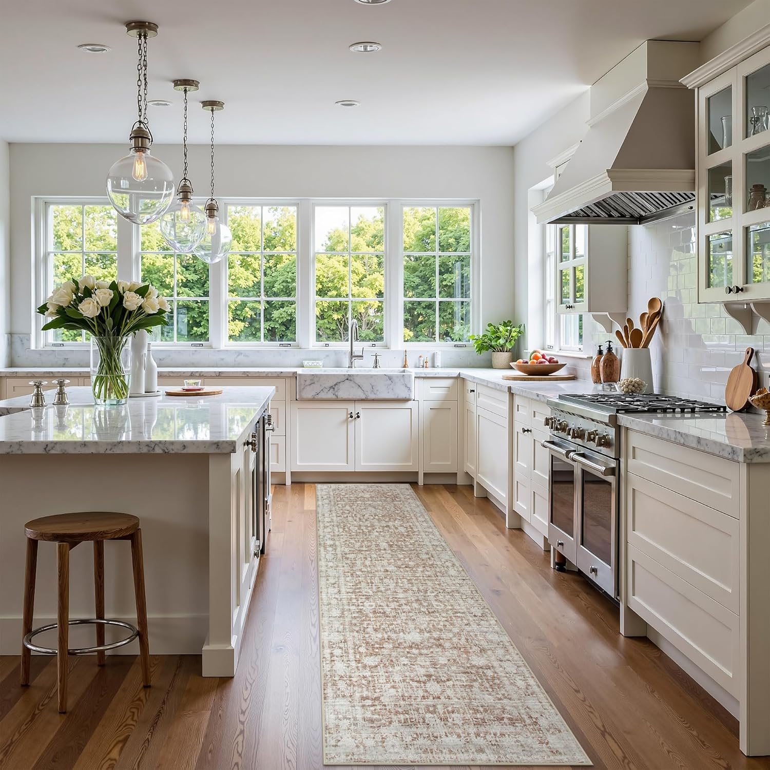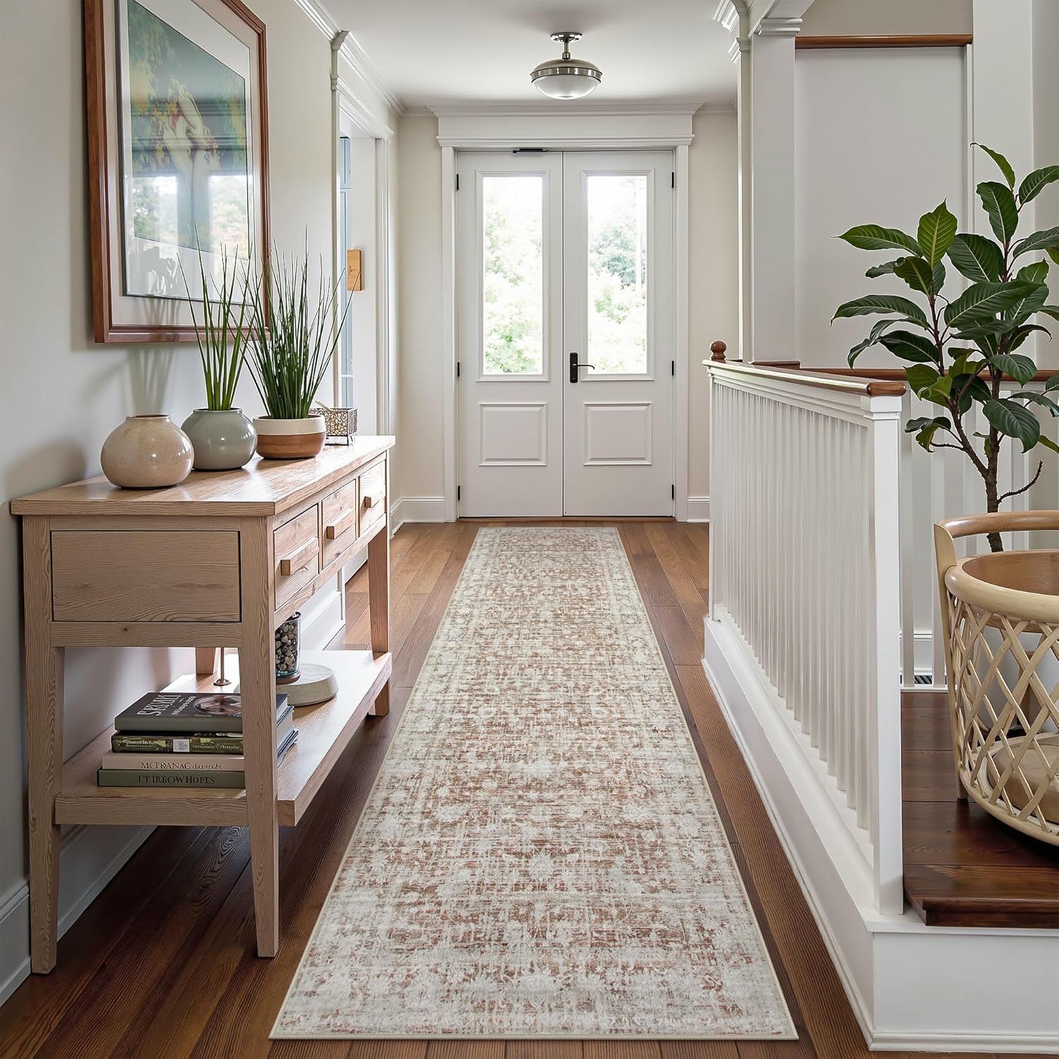 Vintage Runners for Hallways, 2'6"x10' Washable Runner Rug Non Slip, Ultra-Thin Soft Kitchen Runner Rug for Bedroom Bathroom, No Shedding Long Rugs for Entryway Indoor (2.6x10, Khaki/White)