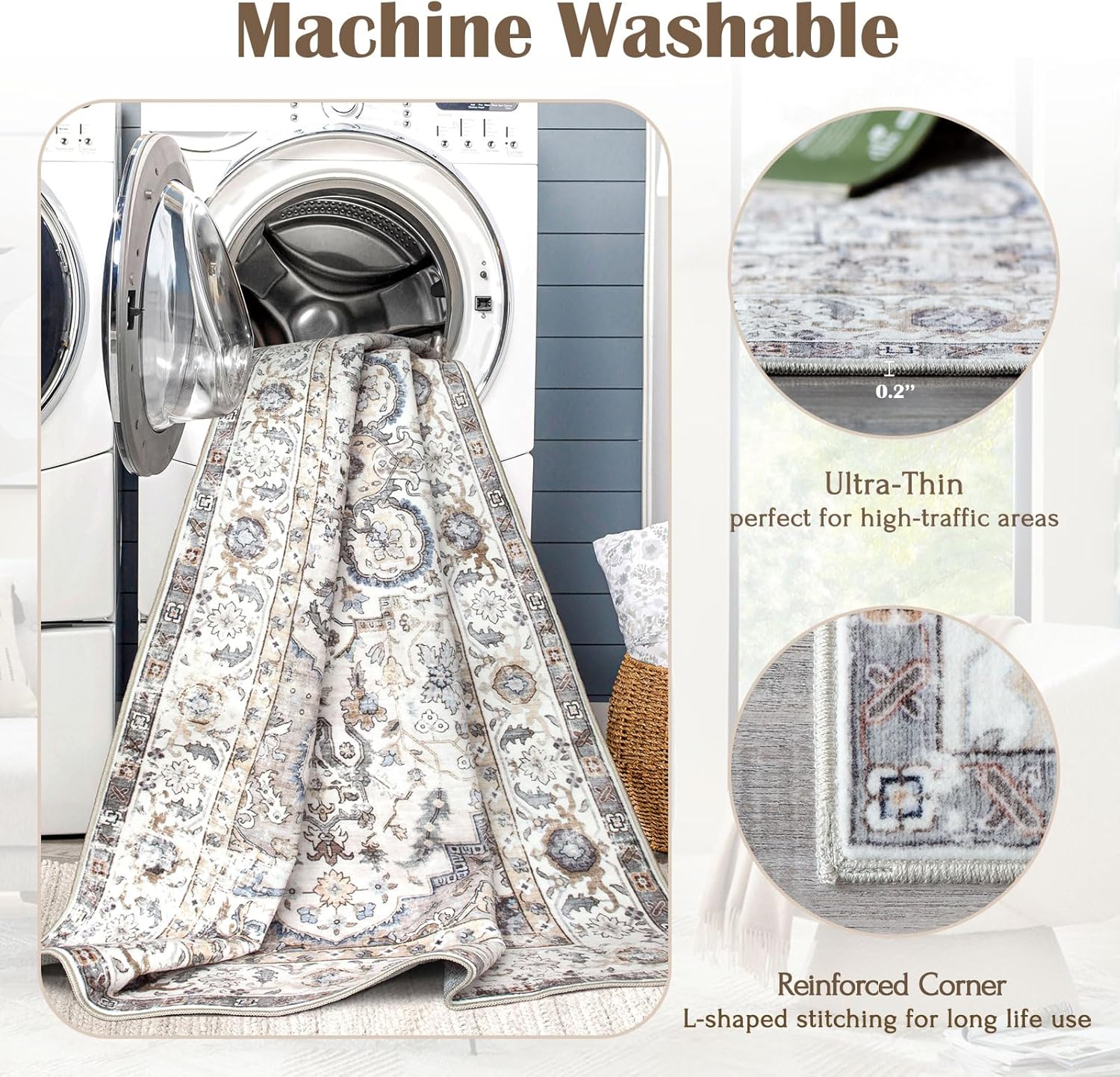 Area Rugs 9x12 Living Room - Large Washable Cream Boho Rugs for Bedroom Soft Vintage Rug Ultra-Thin Farmhouse Oriental Carpet Stain Resistant Rug for Dining Room Guest Room Home Decor