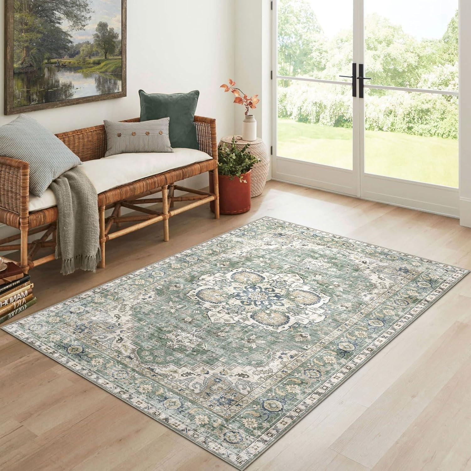 - Stylish Design: Our exquisite printed distressed rug features vintage patternsthat elegantly decorate your home. This retro rug blends stylish design with modern functionality, incorporates accents of sage green, taupe and denim blue, adding a touch of rustic and classic charm to any space. They protect your floors, provide a soft, comfortable feeling underfoot, and serveas stunning focal points in your home decor