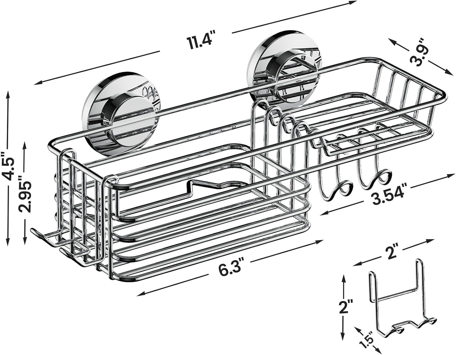 LEVERLOC Shower Caddy Suction Cup, Shelves for Inside with Hooks & Soap Holder Toothbrush Holder, NO-Drilling Bathroom Organizer, Rustproof Holder Storage, Silver
