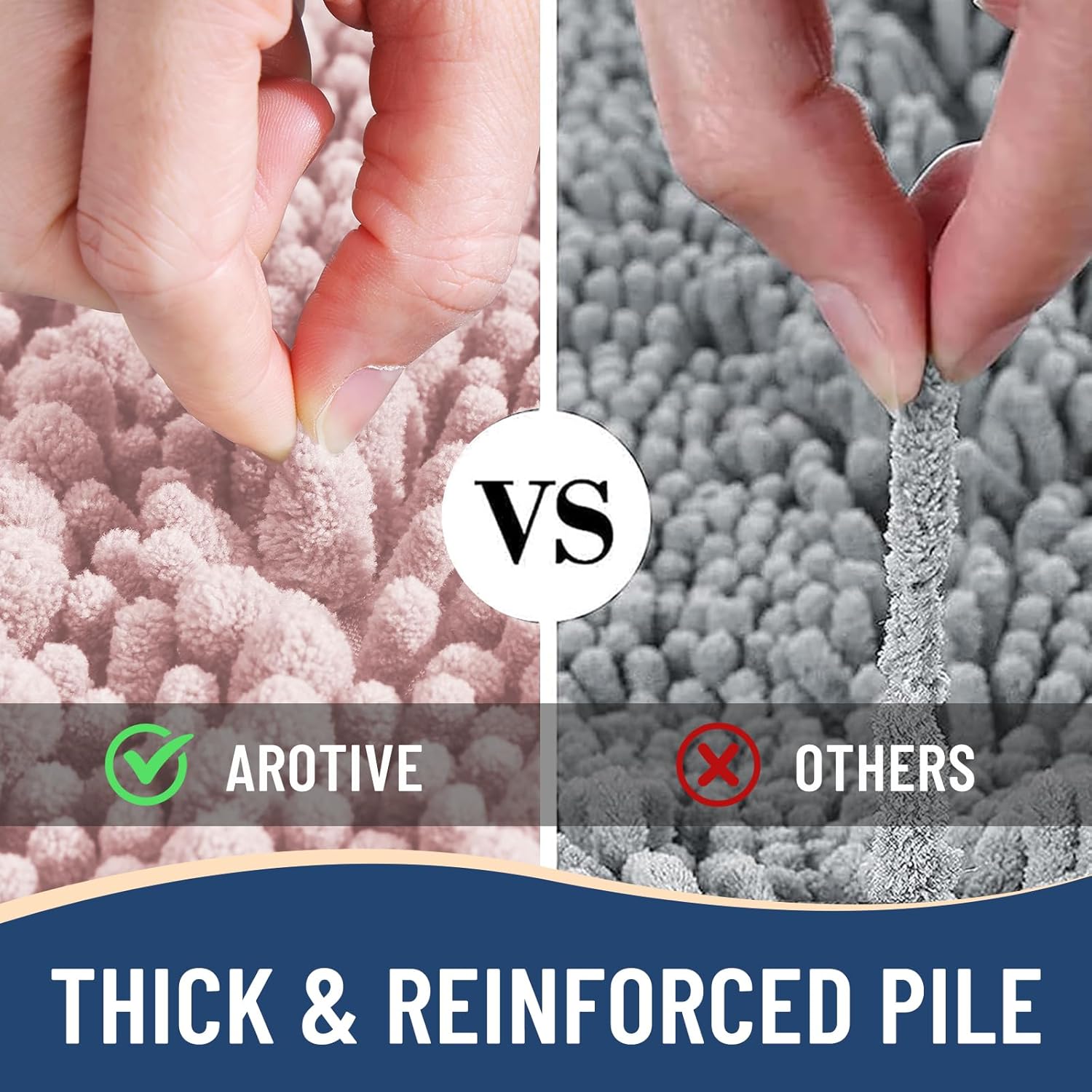- Anti-Skid Backing: Arotive chenille bathroom rugs feature a non-slip bottom consisting of sturdy mesh PVC material that stops the bath mat from shifting and skidding. The middle layer is 4 mm memory foam, which can let you feel more comfortable when wrapping into the rugs. WARNING: Place bath mat on CLEAN DRY FLAT FLOOR ONLY. Water under bath rug can cause it to slip. Always keep the bottom of bath rug dry