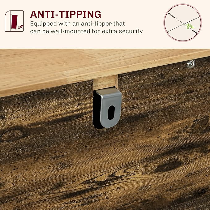 - Thoughtful Workmanship: Made of a quality engineered wood frame, our sideboard storage cabinet is fit for daily use and is easy to maintain. An anti-tipping design on the back of the cabinet stops it from falling over.