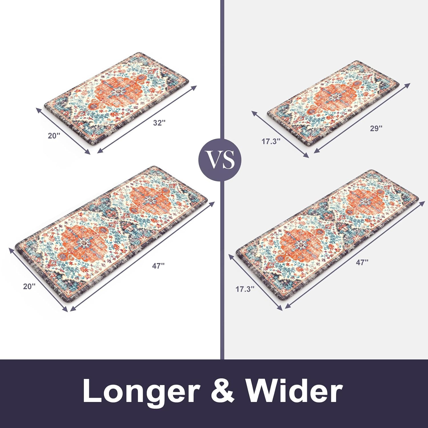 - Wider & Longer Kitchen Rugs 2PC:The set contains 2 rectangular kitchen mats measure 20"x47"+20"x32" which are wider than ordinary kitchen mats on the market.The mats are made of premium materials, which are friendly to your kids and pets