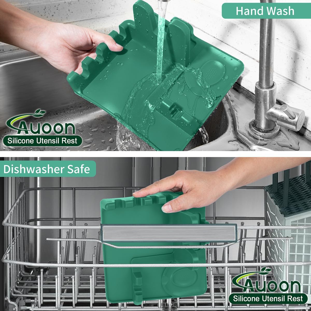 - 【Keep Your Countertop Clean】AUOON spoon and lid rest is a must-have for a tidy kitchen. It neatly holds your utensils and pot lid, preventing oil and water from splattering everywhere. Enjoy a clean and organized cooking space