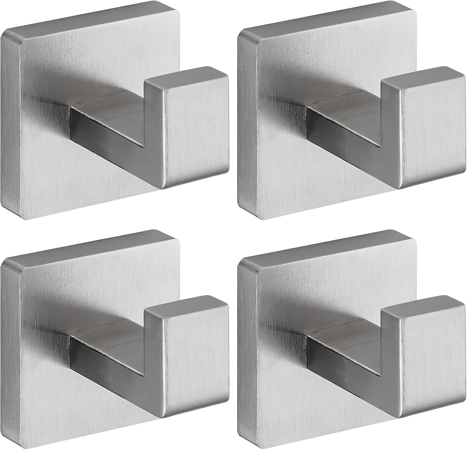 Brushed Nickel Towel Hooks for Bathrooms, Heavy Duty Wall Mounted Stainless Steel Modern Hook, 4 Pack – Ideal for Hanging Towels, Robes, Coats, in Kitchen, Bedroom, Bathroom, or Hotel