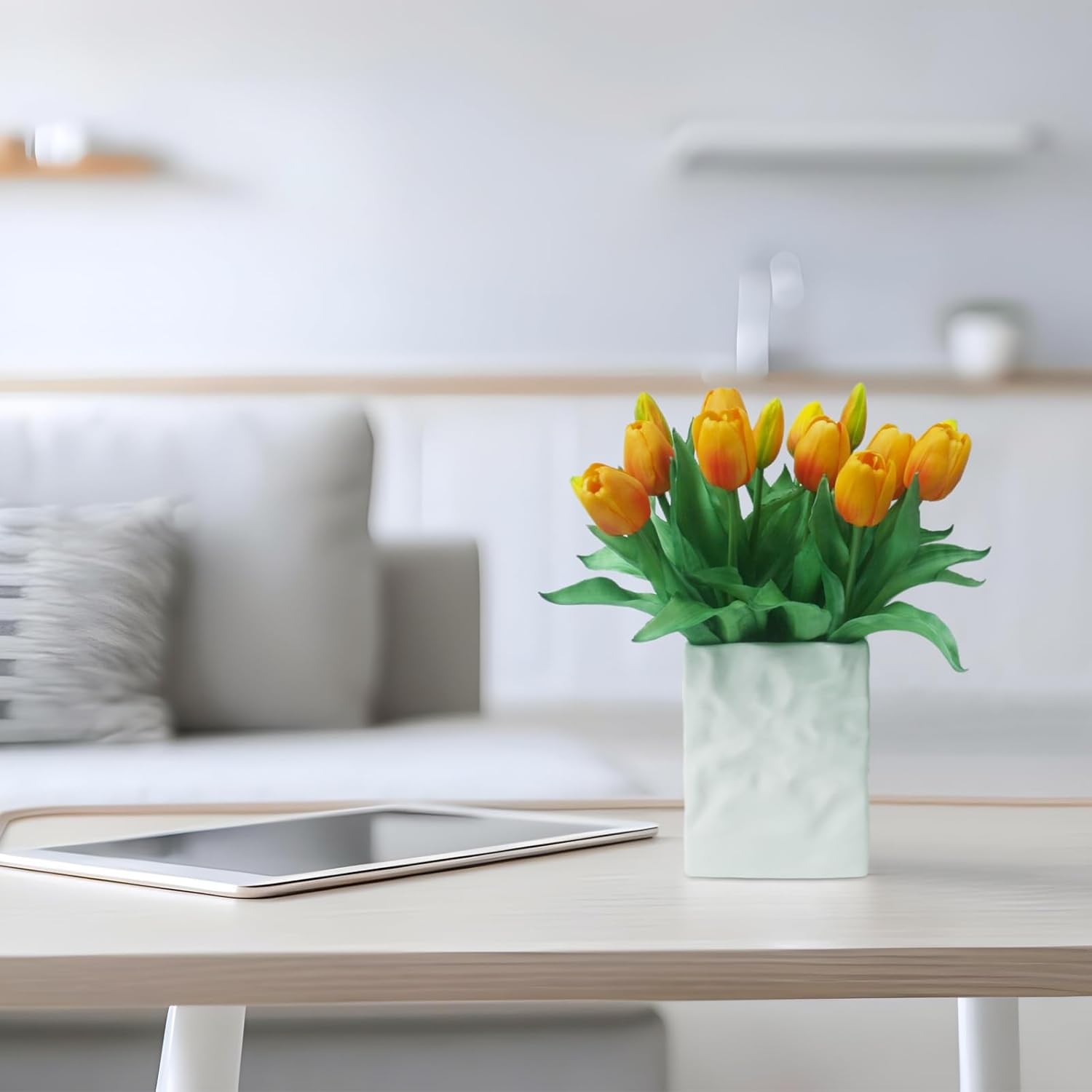 - [No season restrictions]: Artificial tulips that look real have the beauty of real flowers without maintenance or season restrictions. They are a practical and versatile decorative option that, in addition to enhancing your living space, make creative gifts for friends and family.